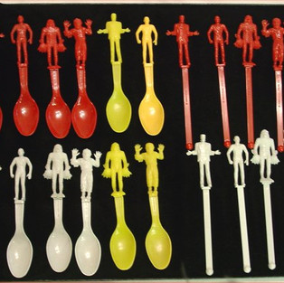 Universal issued a set of I-Scream spoons (file this one under “Swizzle Adjacent”). These sets were sold 12 for ONLY $1.00. Unlike the Mon-Stir Swizzles, the spoons were issued in three or four colors (Red, White, Yellow and (unconfirmed) Orange).